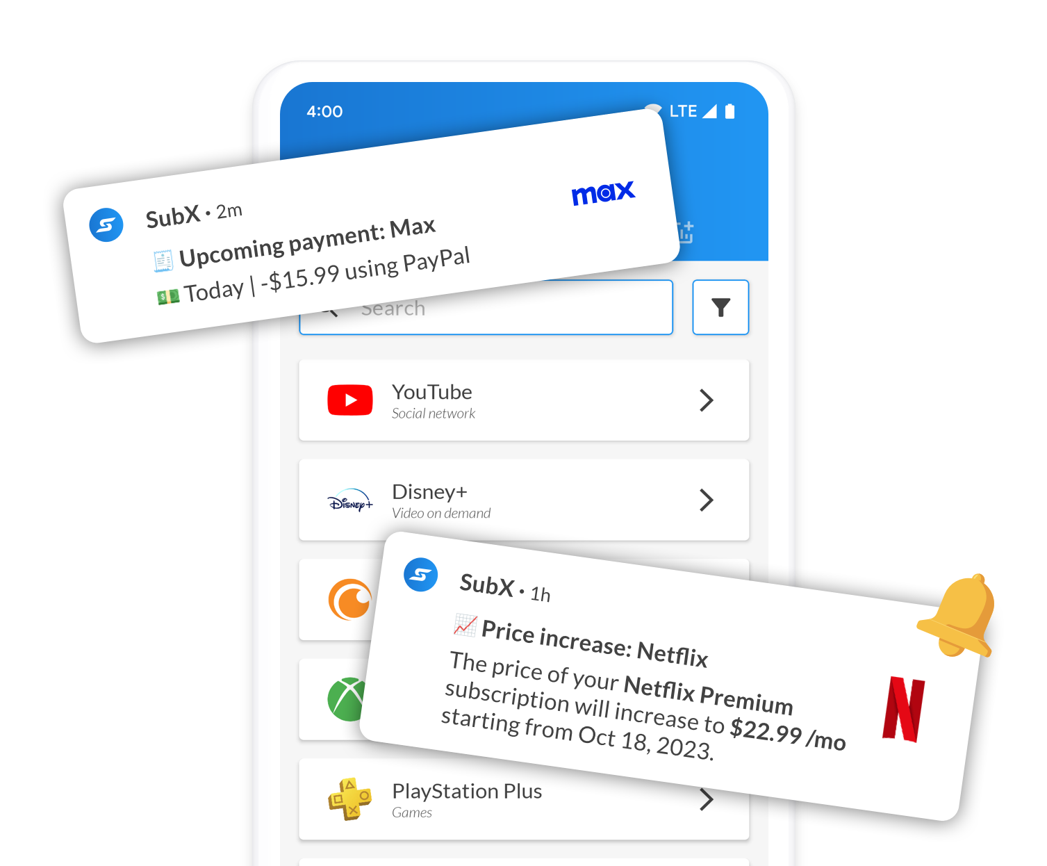 That's it. Once your info is set, SubX sends timely alerts for upcoming bills, special offers, and price increases so you never miss a beat.