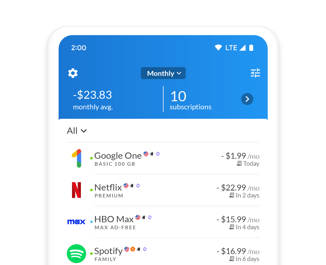 That's it. Once your info is set, SubX sends timely alerts for upcoming bills, special offers, and price increases so you never miss a beat.